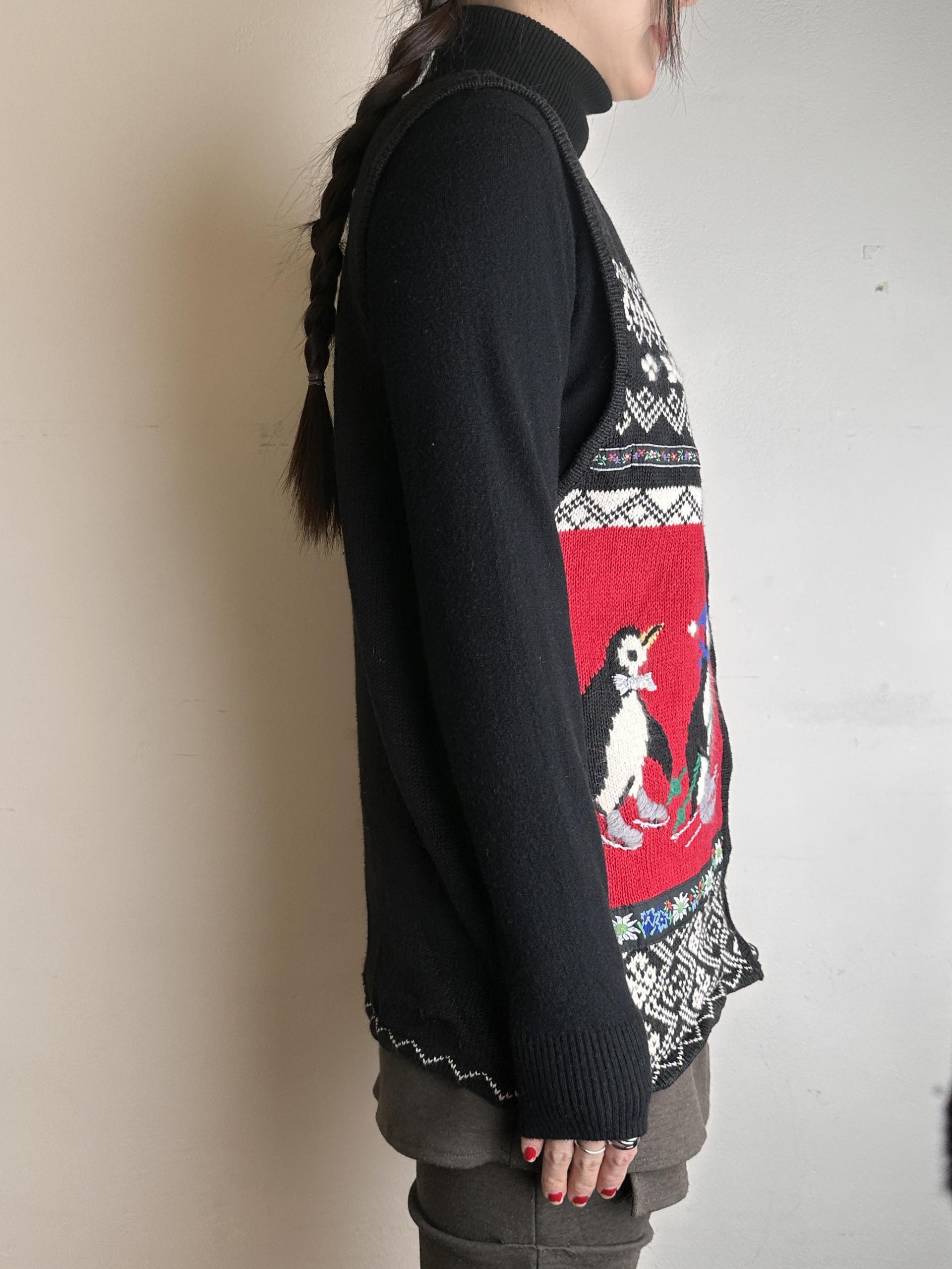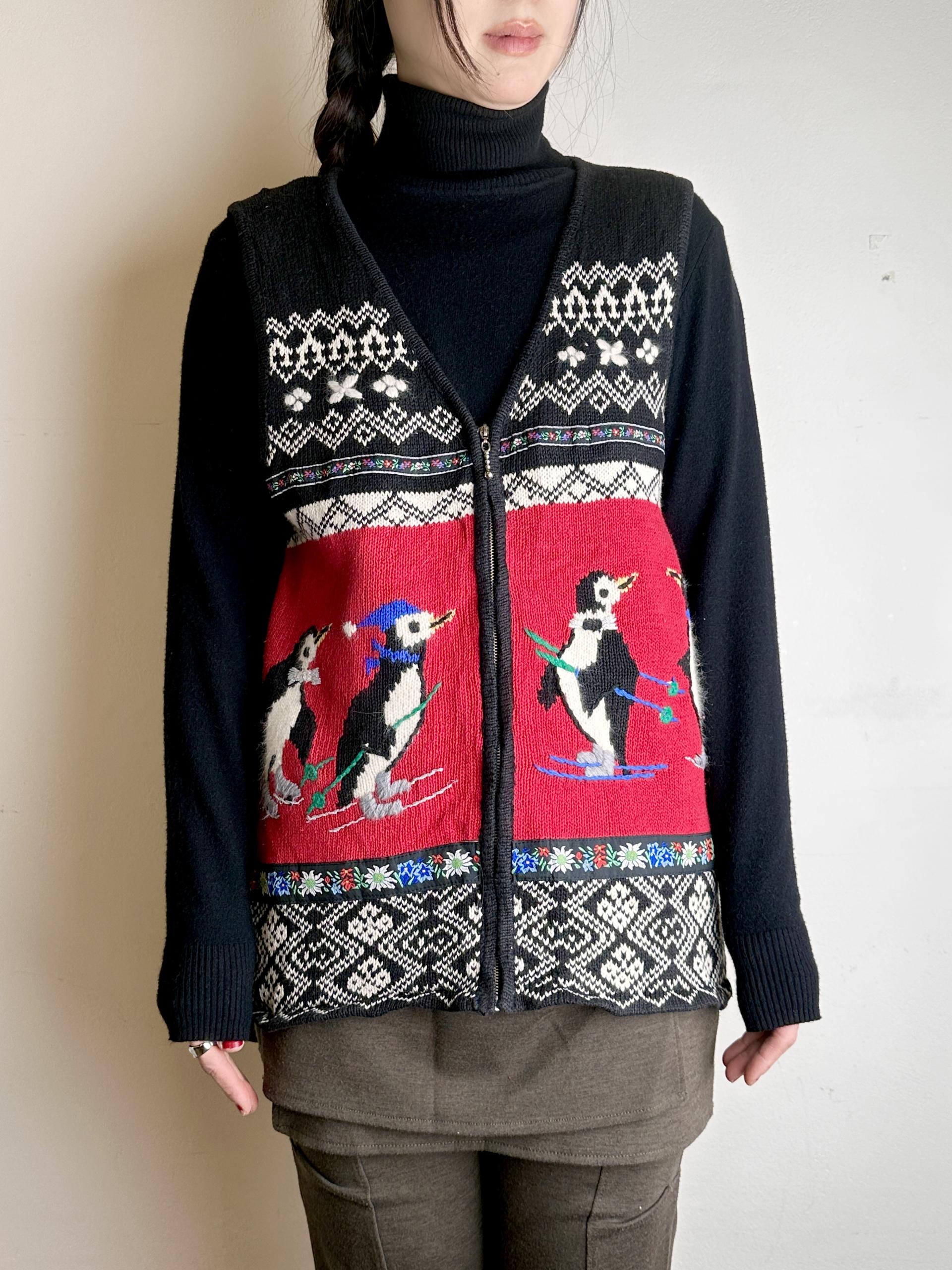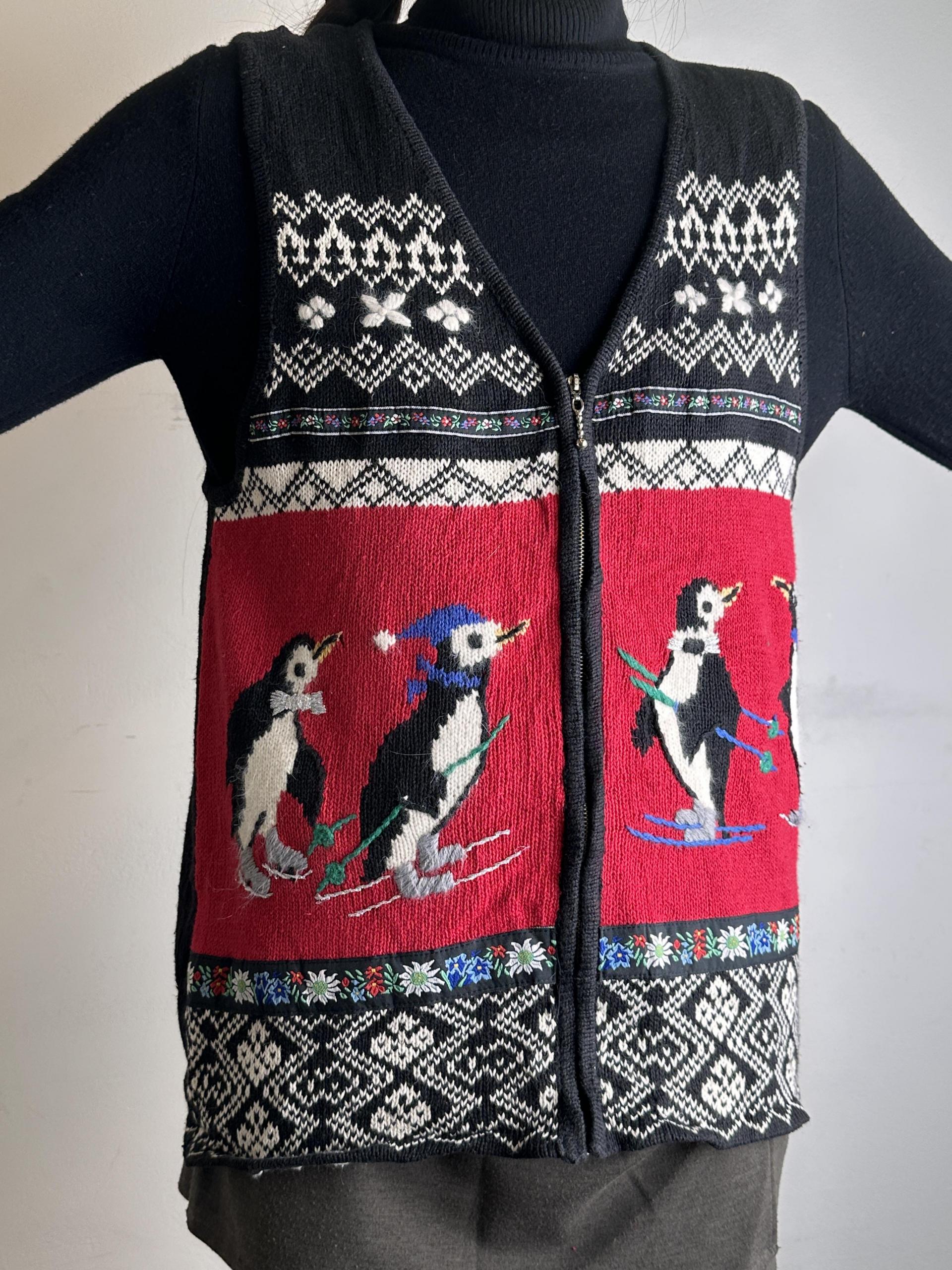 펭귄과 꽃자수 조끼